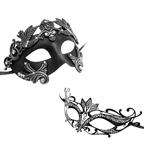 -. Title : Roman Greek Emperor Masquerade Venetian Mask Black Silver Series Couple Mask Sets