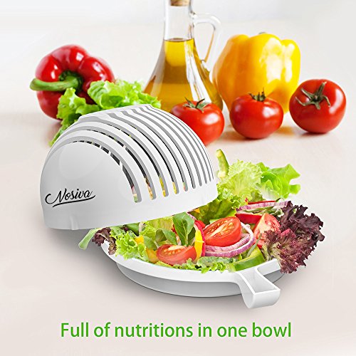Salad Slicer Bowl – Nosiva Vegetable Chopper Fruit Cutter, Chop Slice Vegetables Fruits in Seconds, Salad Spinner with Container, Great Helper of Making Salad for Home Kitchen, White