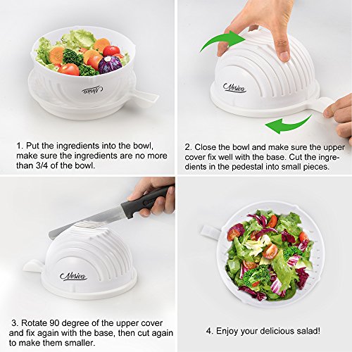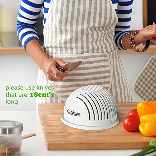 - The salad cutter bowl is designed to hold all of your fruits or vegetables. The unique design to take the hassle out of rinsing and straining and allow you to chop the ingredients all at once.