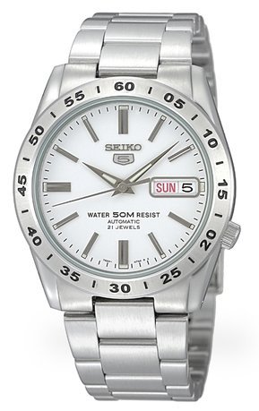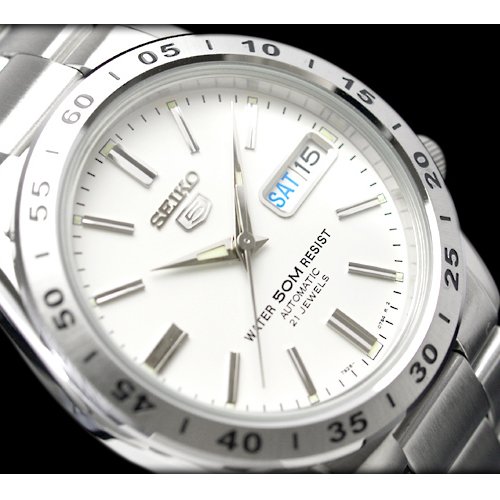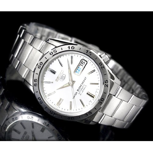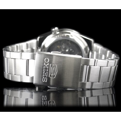 -. Feature : Japan 21 Jewels Automatic Movement by Seiko (Calibre 7S26) / Stainless Steel Case and Band with Push-Button Deployment Clasp / Day/Date Display with Spanish Option, Luminous Hands and Markers, Hardlex Crystal for Duability / Screwed Down See-Thru Caseback, Tachymter Bezel / Water Resistant - 50M