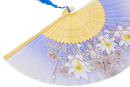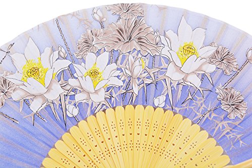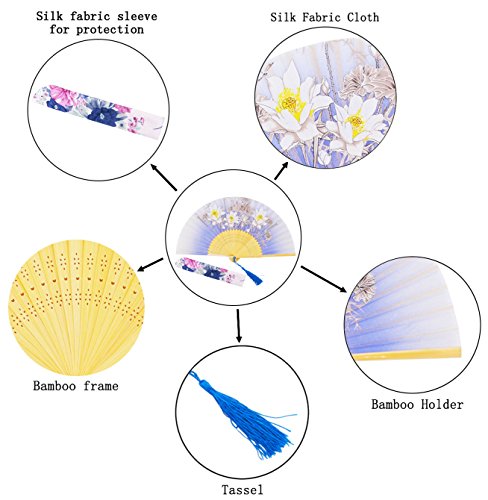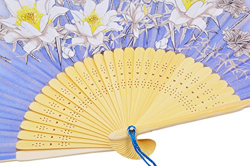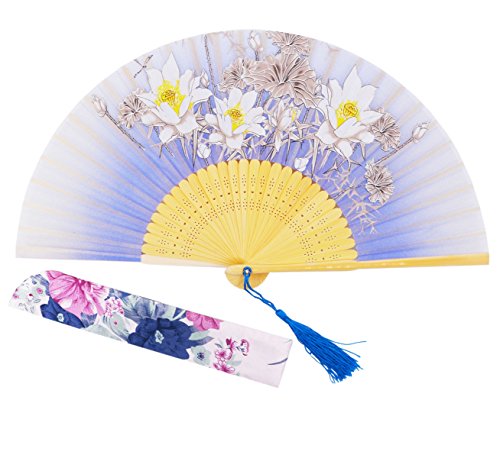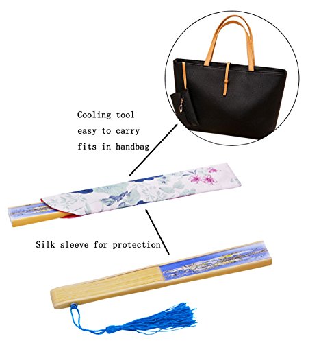 STHUAHE 8.27"(21CM) "Flower" Series Hand Painting Woman Folding Fans With a Fabric Sleeve for Protection,Chinese/Japanese Vintage Style Hollow Carved Bamboo Frame Gift Fans Wedding Fan Dance Fan (E)