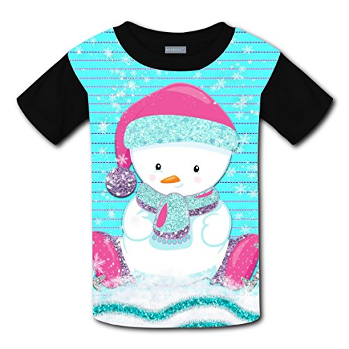 -. Title : Winter Christmas Penguin Designed Kid Short Sleeve Shirts Boys Girls Tee Elastic Crew Round Tops