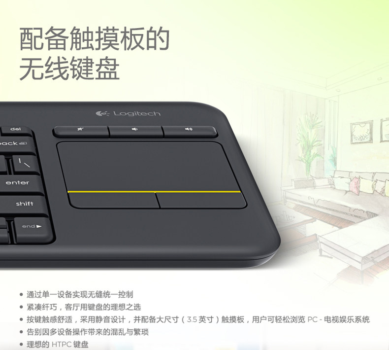 Long wireless range and battery life give you relaxed control of your TV-connected computer, without the hassle and clutter of multiple devices. Comfortable, quiet keys and a large touchpad make navigating entertainment easy. And setup is a snap thanks to the tiny, plug-and-play Unifying receiver.