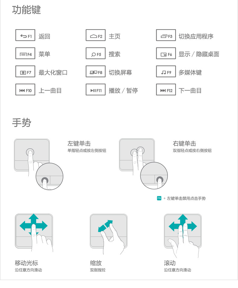 Keyboard buttons are also part of the remote control functions are integrated, so you can quickly change the channel or control the volume. The keyboard itself uses two AA batteries, it can achieve a few months of use