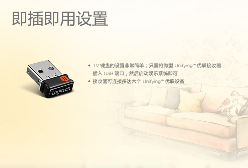 Plug-and-play design: Unifying receiver makes setup of your TV keyboard a snap