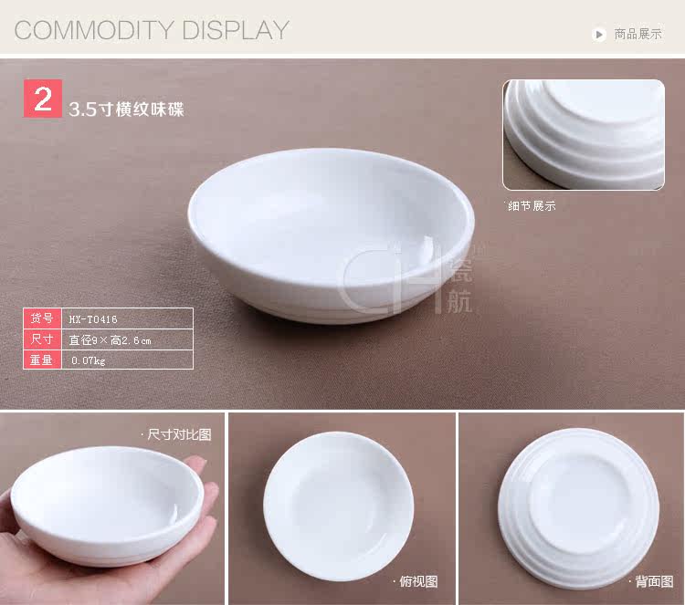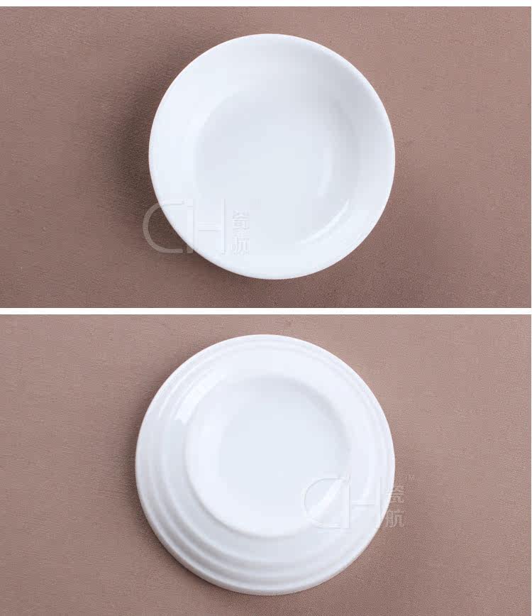 瓷航纯白陶瓷碟圆形骨瓷酱料小蝶小吃碟日式调料3.5英寸横纹味碟