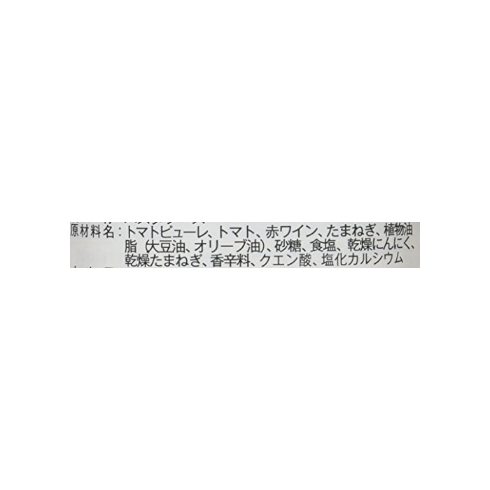 원재료:토마토 퓌레,토마토,레드 와인,타마 파,식물성 기름지(대두유,올리브유)고, 설탕,식염,건조 마늘,건조 타마 파,향신료,구연산,염화 칼슘,수