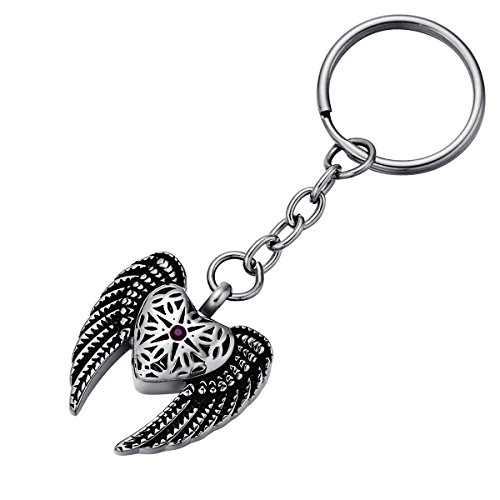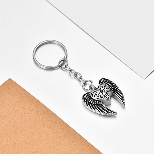 FCZDQ Purple Crystal in Star & Angel Wing Memorial Ash Pendant Urn Keychain Cremation Jewelry