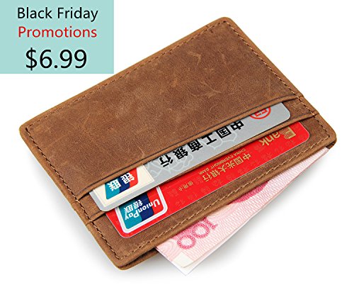 -. Feature : Material;Italian imports Crazy horse leather,100% genuine leather / Size;4* 3*0.2inches.weight;0.07lb / Structure;4 card slot,1 cash slot.Lined RFID Blocking material,to ensure that your card information security / Use;mini wallet card holder,perfect to hide in any of your pockets / Service;Provided by LXFF a year after-sales service
