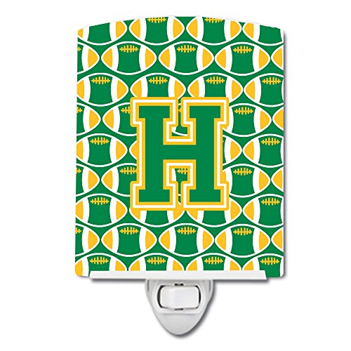 Caroline's Treasures Letter H Football Green and Gold Ceramic Night Light, 6 x 4", Multicolor