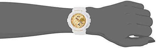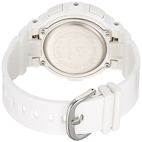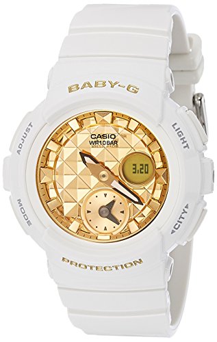Brand, Seller, or Collection Name:Casio Model number:BGA-195M-7ADR (B183) Part Number:BGA-195M-7ADR (B183) Model Year:2017 Item Shape:Round Dial window material type:Mineral Display Type:Analog and digital Clasp:Buckle Case material:Stainless steel Case diameter:40 millimeters Case Thickness:15.5 millimeters Band Material:Rubber Band length:Women's Standard Band width:19 millimeters Band Color:White Dial color:Gold Special features:Light, Shock resistant, World time Movement:Quartz Water resistant depth:100 Meters