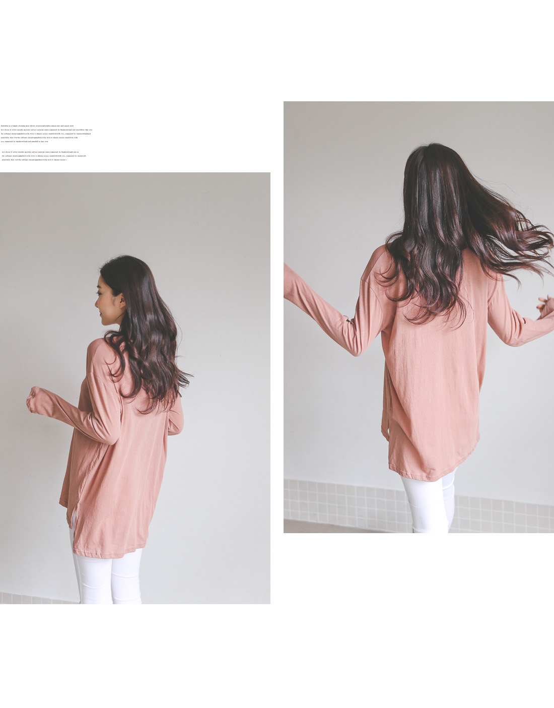 긴 소매와 힙을 덮어주는 기장,밑단 트임 디테일로