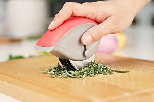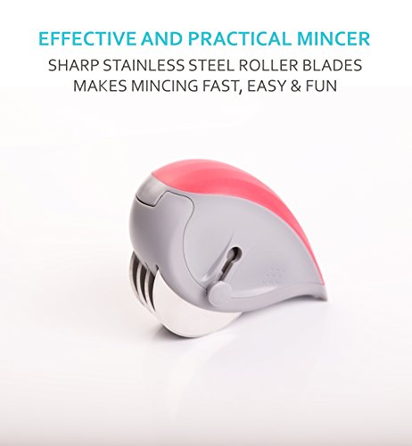 Super Sharp Blades that Cuts Equipped with 4 high grade stainless steel roller blades to efficiently mince virtually every fresh herb like parsley, cilantro, basil and lots more within seconds without bruising or crushing. Cut a thin slice of onion or any soft vegetable and chop them until desired consistency is reached. Ideal for cutting dough while preparing home made noodles, spaghetti or pasta.