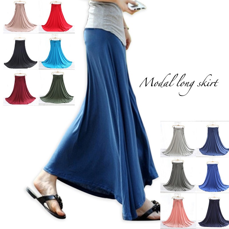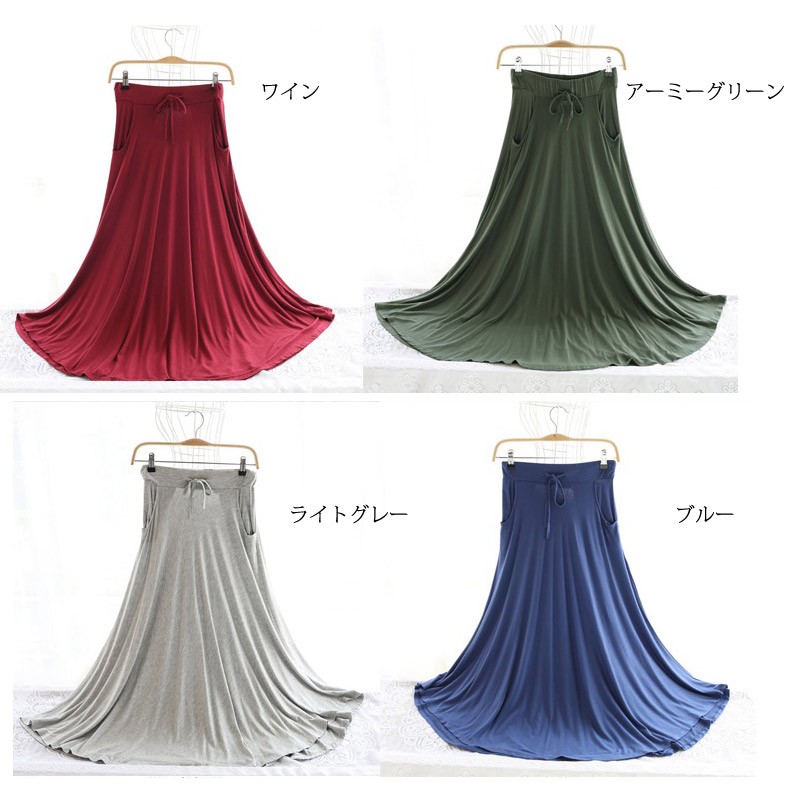 柔らかく肌触りの良いモダール素材のロングフレアスカート♪