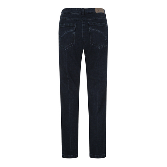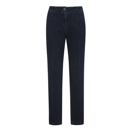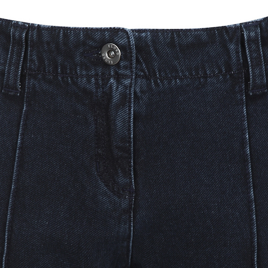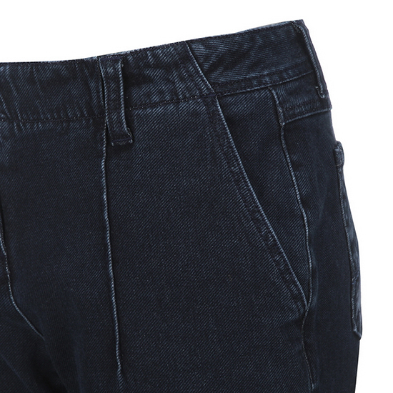 - 턱 디테일에 라인 워싱을 적용한 여성 데님 팬츠.