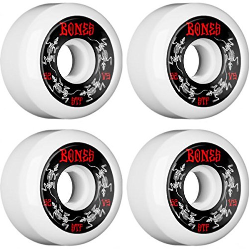 Studio : Bones Publisher : Bones Binding : Misc. Product Description These high-grade, brand new Bones Wheels wheels are built to last! They measure 52mm in diameter and 83b in hardness, providing a super smooth ride on the street or at the park. Bones Wheels STF V5 Annuals Skateboard Wheels are sold in (1) set of four (4) wheels.Note: Bearings not included. Includes: One (1) set of 52mm Bones Wheels STF V5 Annuals Skateboard Wheels; includes four (4) wheels. 0