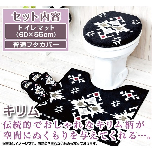 トイレ空間を洗練した空間にしてくれるトイレマットセットです! 超お買い得な、トイレカバー普通(O・U型)タイプの2点セットです。 【セット内容】 トイレ足元マット、普通フタカバー ■材質 トイレ足元マット:アクリル100% 普通フタカバー:アクリル100% ■サイズ 足元マット:約55×60cm ■特長/仕様 マットは”すべりにくい加工”済み フタカバーの種類は大きく分けて2種類あります。 この商品は、卵型の普通フタ専用のカバーです。 洗浄暖房型ではご使用できません。