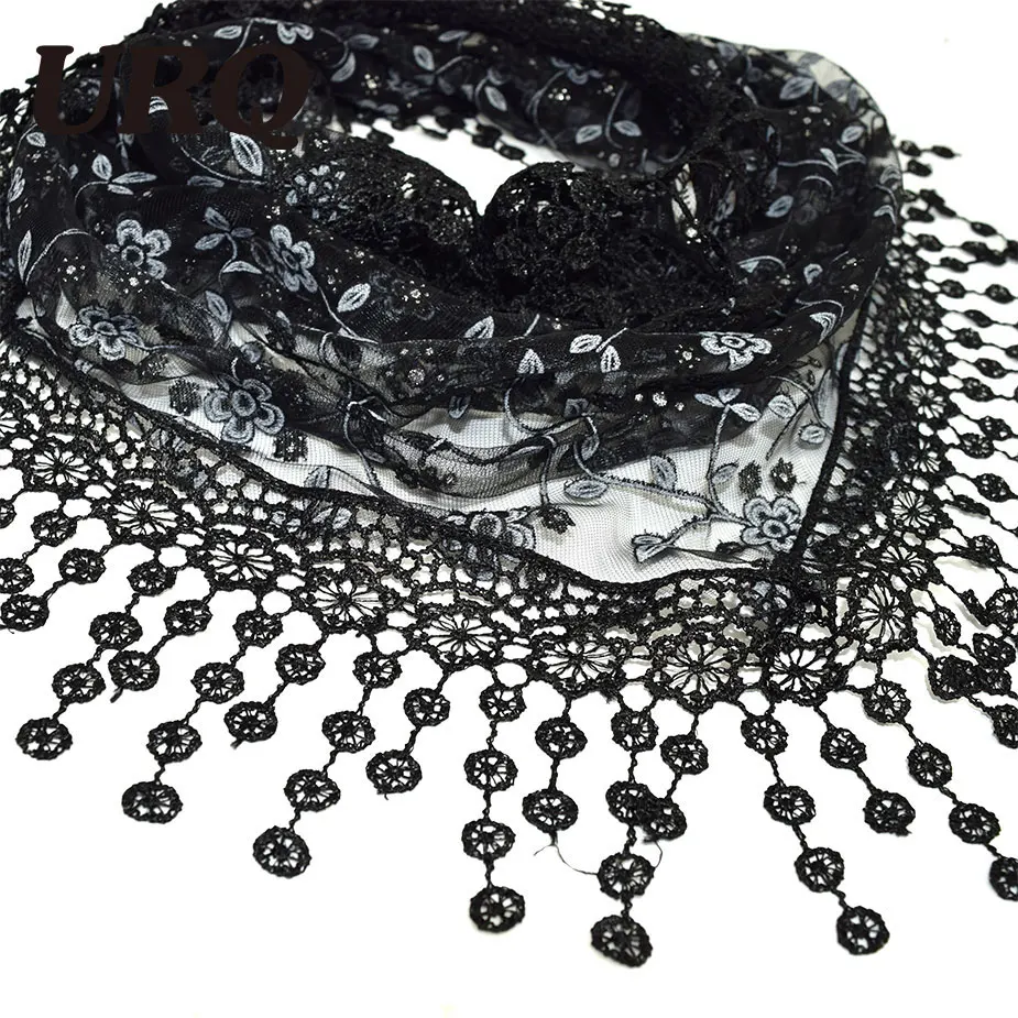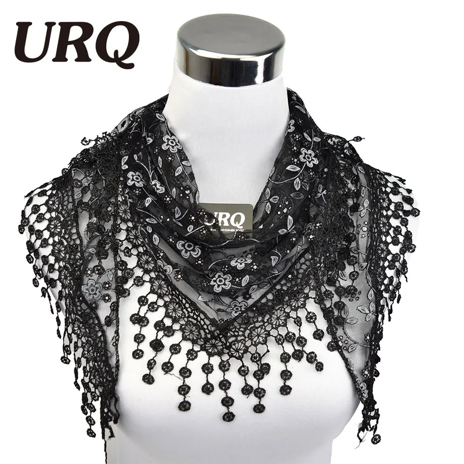 Color: red,Purple,pink,white,black,rose,green,blue the item: lace scarves Tassel Metalic: Women Triangle Scarf Coffee: Silk summer scarves name: New Brand design Summer Lady Lace Scarf Tassel Sheer Metallic