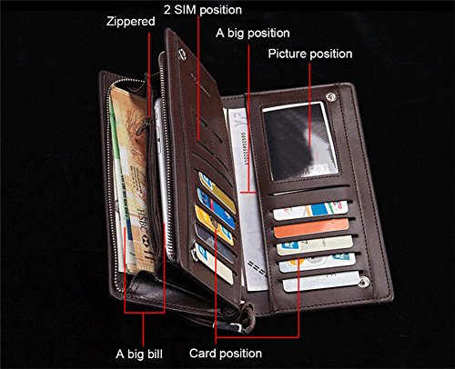 | (ZYZF)/Accessories/Wallets, Money Key Organizers/DIRECT FROM USA/ZYZF Men Boy Classics Business PU Leather Long Purse Zipper Bifold Blocking Wristlet Strap Card... |