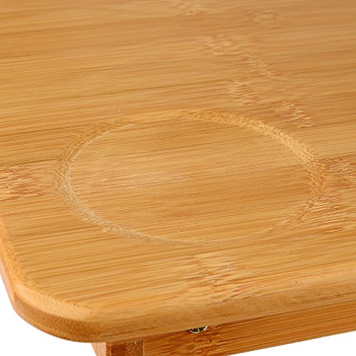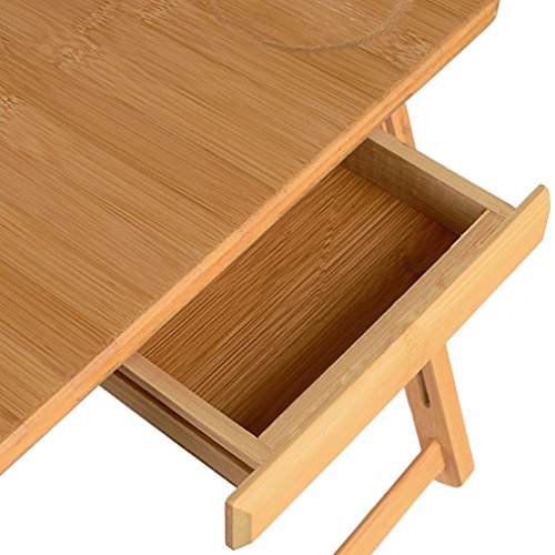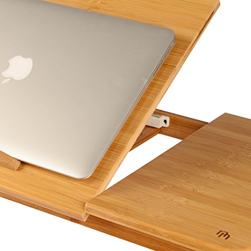 -. Feature : WHY LIMIT YOURSELF: Sometimes, we just want to want to use our laptop, tablet, or book where we are most comfortable, stimulated, or inspired, like on the living room couch, the old reclining chair in front of the TV, the porch bench, the poolside lounge, or even my personal favorite, bed; the Lapdesk is the perfect accessory for these occasions / BE COMFORTABLE: No more jerry rigging a "pseudo-lapdesk" with a pillow or folded up blanket; the Lapdesk is designed for using your laptop, tablet, or book in the most scenic, comfortable, rejuvenating settings; there is a cup groove to keep your drink from sliding around; there is a side drawer to store accessories; it is 21.6 inches (55 centimeters) wide; its height is adjustable from its minimum height of 8 inches (20 centimeters) to its maximum height of 11 inches (28 centimeters) / DECORATIVE VENT: Using makeshift items as "pseudo-lapdesks" can sometimes stifle airflow causing your laptop to get overheated, not good; use the real Lapdesk instead; it has a beautifully carved vent to maintain proper airflow and keep your laptop from overheating / NIFTY FEATURES: Top surface angle and legs are fully adjustable so you can achieve the ideal ergonomics; there is even a mini shelf on the top surface that keeps a laptop, a tablet or a book from sliding off when the top surface is not completely flat; the legs are also fully collapsible for convenient storage; it is also made from sustainable bamboo, an added bonus / 100% SATISFACTION GUARANTEED: Here, at Nicely Neat, we want you to be satisfied with your purchase; you are backed by our 30 day no questions asked money back guarantee so you can buy with confidence