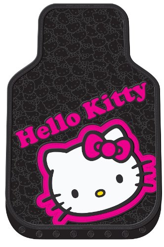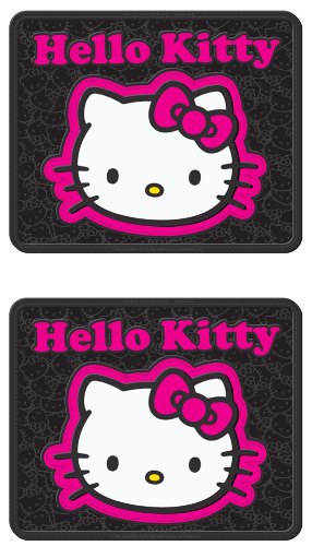 - Feature : Bright Hello Kitty design / 2 front rubber floor mats - 26" inches (long) x 16.5" inches (wide) - each / 2 rear rubber floor mats - 14" inches (long) x 17" inches (wide) - each / 2 universal fit bucket seat covers, 1 steering wheel cover / Unit of measure - 1 set of 7 pcs (2 front mats + 2 rear mats + 2 seat covers + 1 wheel cover)