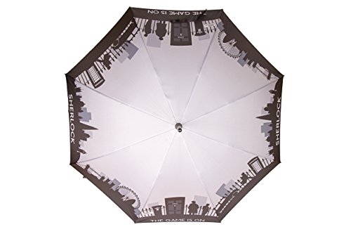 -. Brand : Sherlock -. ClothingSize : One Size -. Color : Multicoloured -. Department : unisex-adult (novelty and lage only) -. EAN : 5060326219161 -. Feature : 23"/58.4cm canopy displaying Holmes and Watson at home in London / Auto open - Simply press the button to open the umbrella / Long lasting fibre glass frame and shaft, with a comfortable rubber-coated handle / Exclusive design, officially-licensed by the BBC and Hartswood Films / 90 days moneyback guarantee -. IsAdultProduct : 0 -. NumberOfItems : 1 -. PackageQuantity : 1 -. ProductGroup : Apparel -. ProductTypeName : LAGE -. Size : One Size -. Title : Sherlock Skyline Stick Umbrella - Official BBC Merchandise - LOVARZI