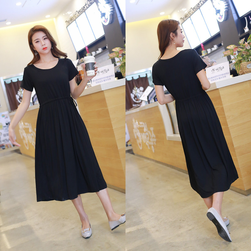 春夏季新款连衣裙显瘦修身无袖中长裙性感圆领领韩版拖地裙