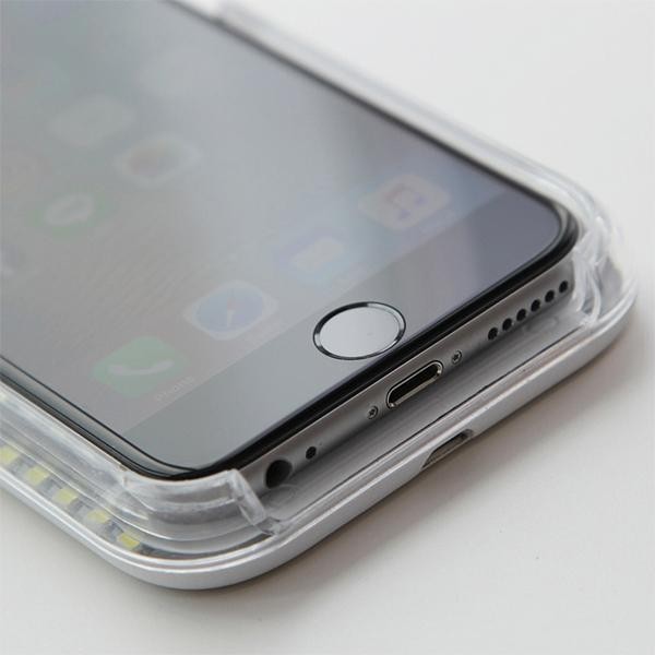 42個の白色LEDが搭載された、セルフィーライト付きiPhone 7用ケースです。いつでもどこでもライトが当てられる♪可愛く写るためには明るい照明が必須!!セルフィー女子のマストアイテムです。LEDの明るさは、電源ボタンを長押しで無段階調整が可能。お好みの明るさで撮影をお楽しみ頂けます。更に、ボタンをダブルクリックすることにより2種類の点滅モードも装備♪ |