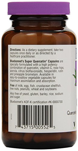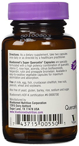 -. Binding : Health and Beauty -. Brand : Blue Bonnet -. Color : Parent -. Feature : Super Quercetin By Bluebonnet - 50 Vegetarian Capsules -. IsAdultProduct : 0 -. Label : Bluebonnet -. LegalDisclaimer : These statements have not been evaluated by the Food & Drug Administration. This products is not intended to diagnose, cure, mitigate, treat, or prevent any disease. -. Manufacturer : Bluebonnet -. PackageQuantity : 1 -. ProductGroup : Health and Beauty -. ProductTypeName : HEALTH_PERSONAL_CARE -. Publisher : Bluebonnet -. Studio : Bluebonnet -. Title : Bluebonnet Nutrition - Super Quercetin
