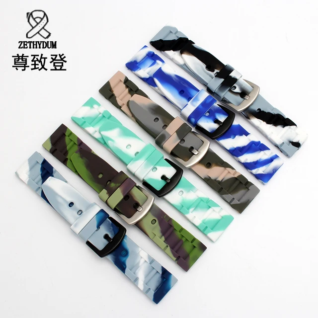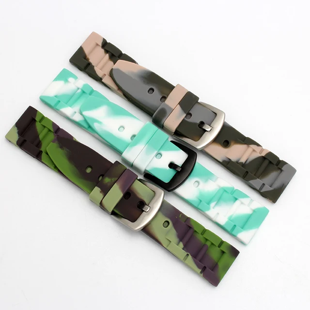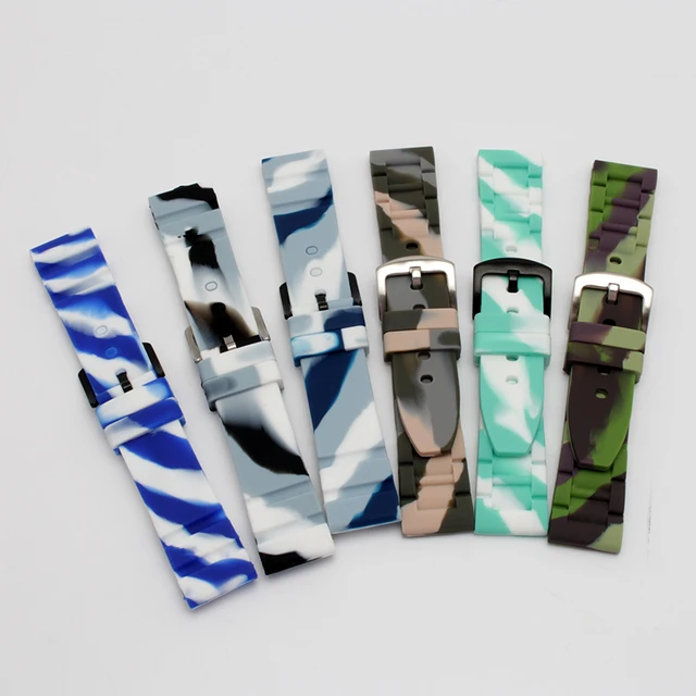 | [해외] 20 미리메터 26 미리메터 자연 실리콘 스트랩 위장 고무 팔찌 유연한 방수 손목 시계 |