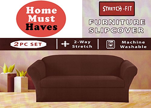 -. Title : Homsthaves STRETCH FORM FIT - 2 Pc. Slipcovers Set, Couch/Sofa + Loveseat Covers - BROWN