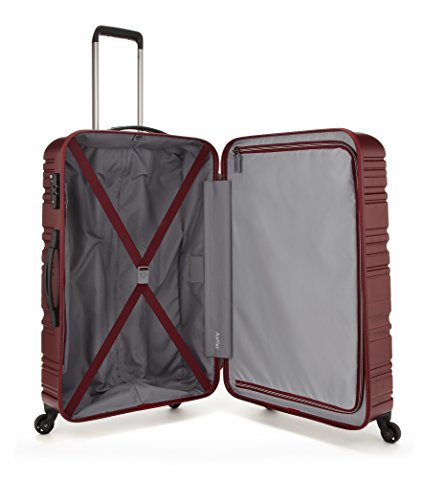 -. Feature : ABS material with embossed satin sheen finish / Fixed TSA combination lock / 10 year warranty / Bespoke antler trolley handle and 360 degree rotating wheels / 63.2