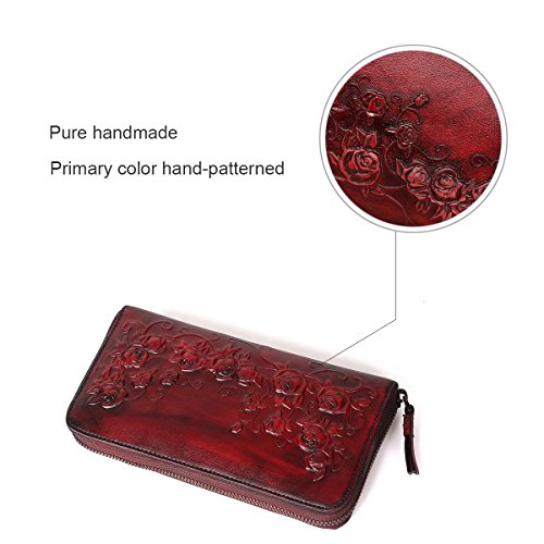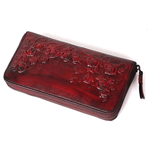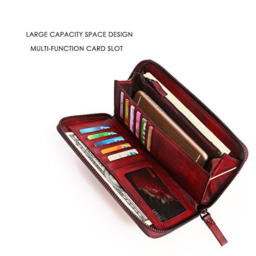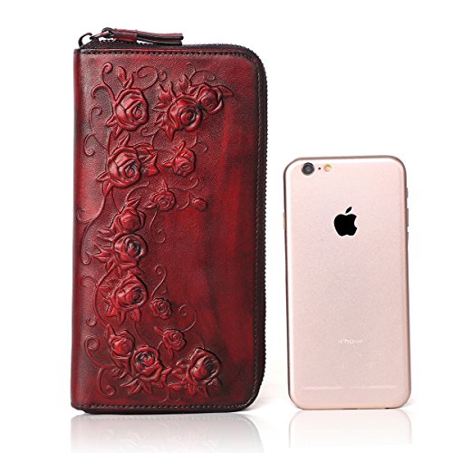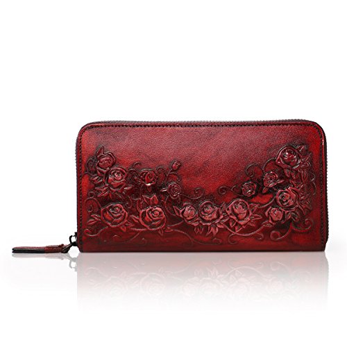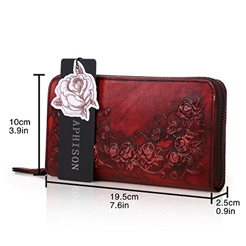 APHISON Women's Zipper Wallets, Designer Header Layer Cowhide Leather Embossed Card Clutch Holder Purse/Gift Box