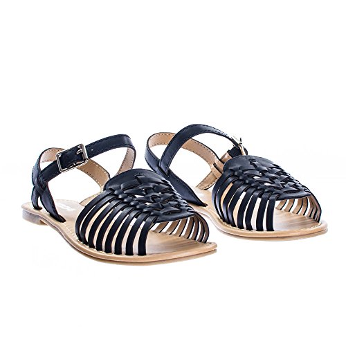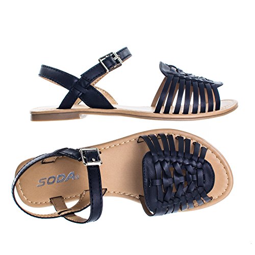 Binding : Apparel Product Description About This Shoes :These flats features a fisherman style huarache silohuette with cage woven straps, open back and adjustable ankle strap. Brand - Soda Colors Available: Black Occasion: Casual Shoe Type: Shoe Style: Inner Lining: synthetic Heel Height In Inches - 0.25 Heel Style - 0 Toe Style - open-toe Platform Height In Inches - .25" Shaft Height In Inches - Circumference Opening - Strap Type - ankle-strap Sole - manmade All Man Made Material unless otherwise stated. Computer/Phone/Table monitors might show color differently because of its quality or calibration, we suggest you look at the photo in at least 3 monitors if you need exact color match of your shoes. 0