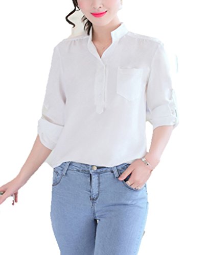 -. Title : (ココピ)COCOPI ブラウス 長袖 ホワイト Vネック ゆる とろみ シャツ レディース ファッション オフィス 白