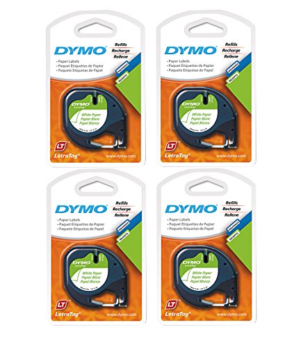 • Dymo LetraTag Pack Paper Label Refills, White, 1/2 x 13 Ft., Pack of 8