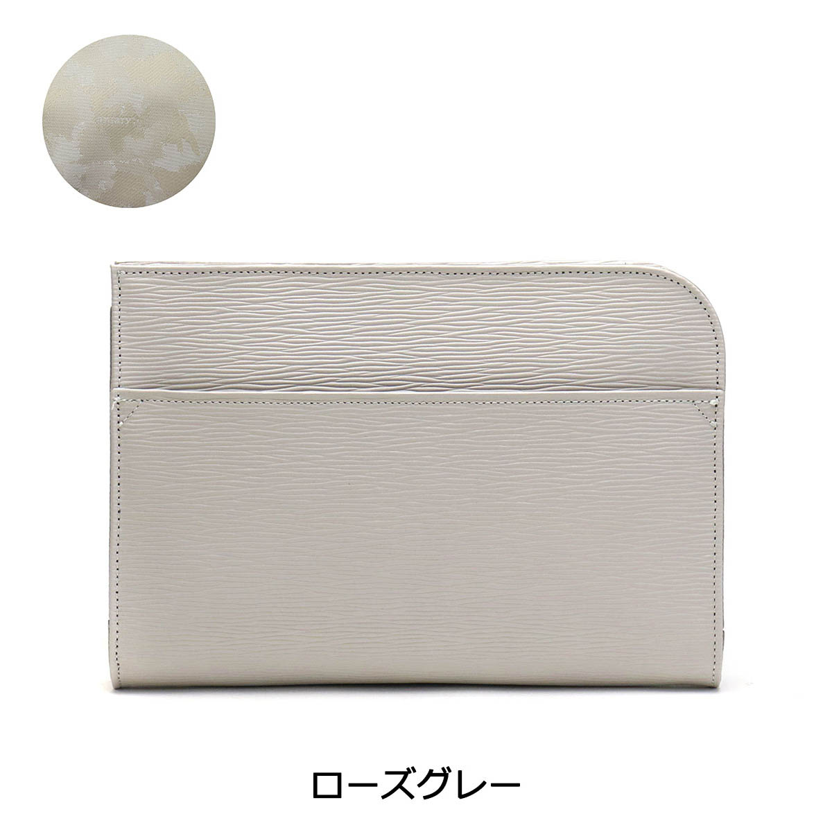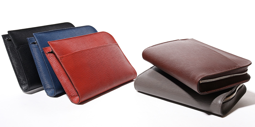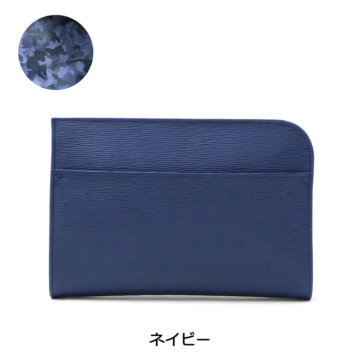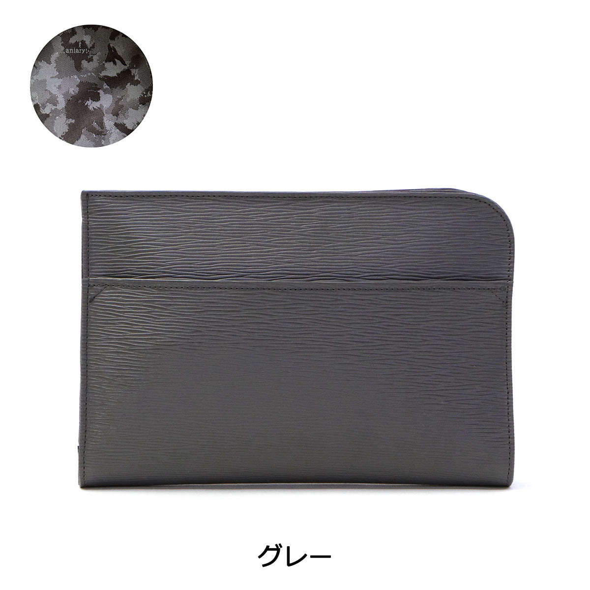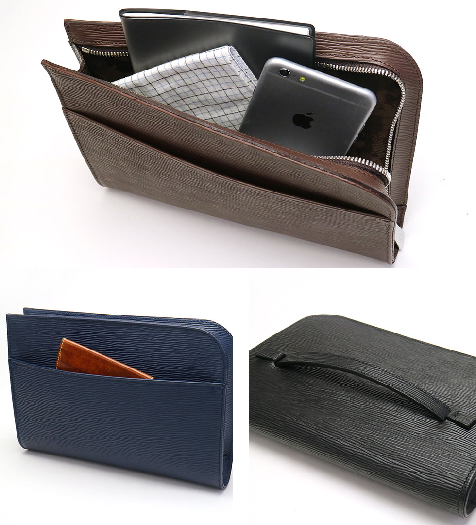 光のあたる海面を感じさせる「ウェーブレザー」を使用した、コンパクトなクラッチバッグ。少し小さめなサイズ感が、より良い持ち歩きやすさを実現しています。