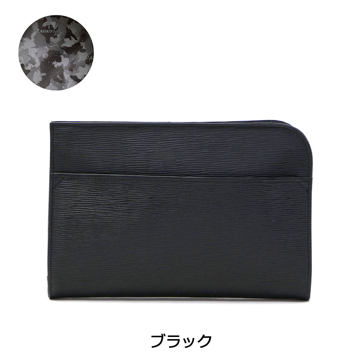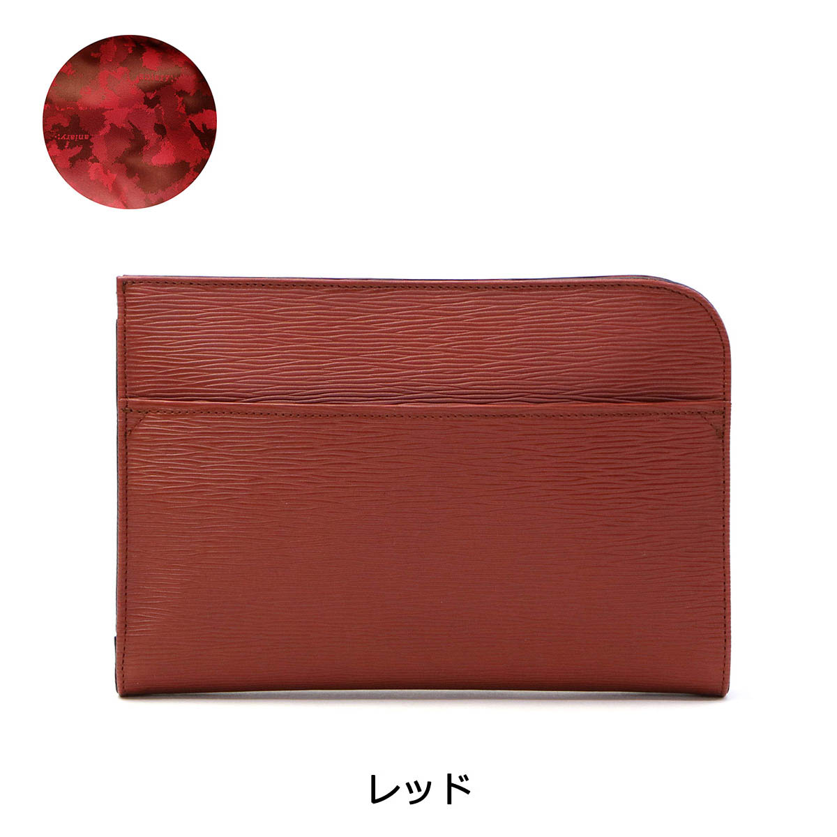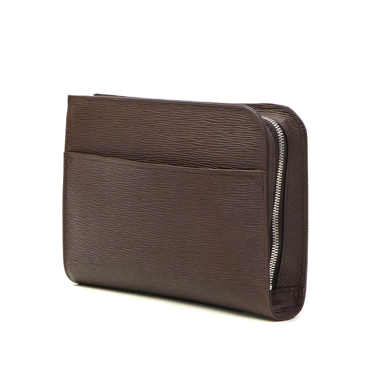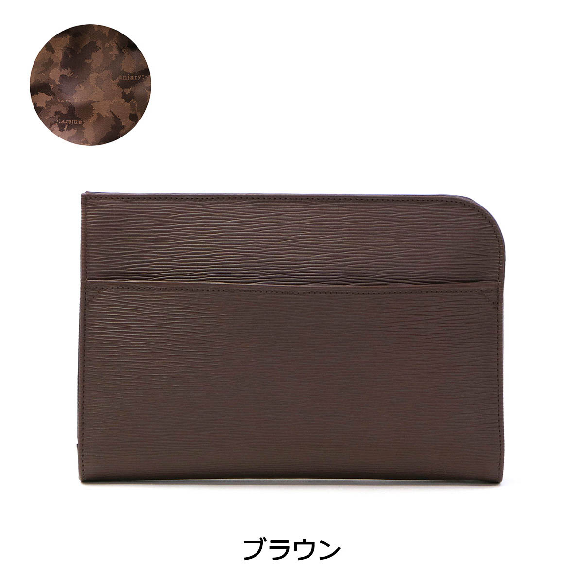 光のあたる海面を感じさせる「ウェーブレザー」を使用した、コンパクトなクラッチバッグ。少し小さめなサイズ感が、より良い持ち歩きやすさを実現しています。