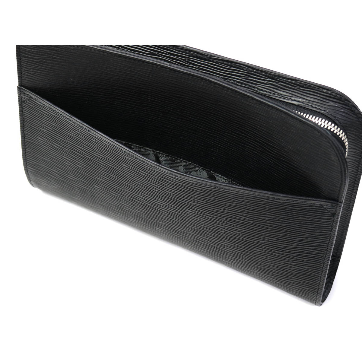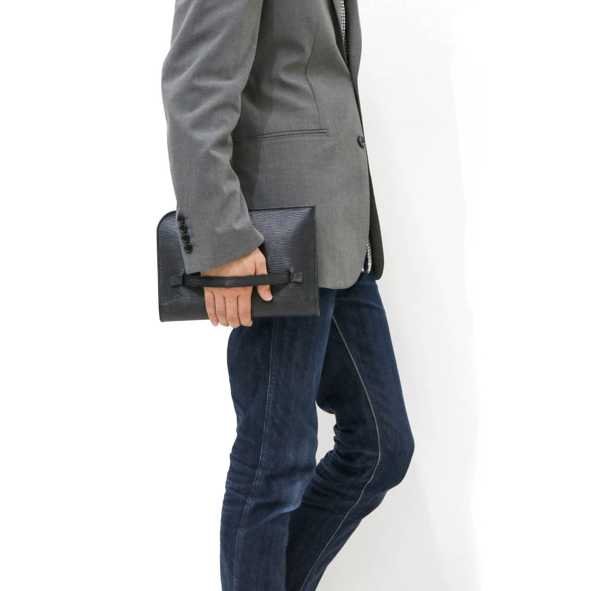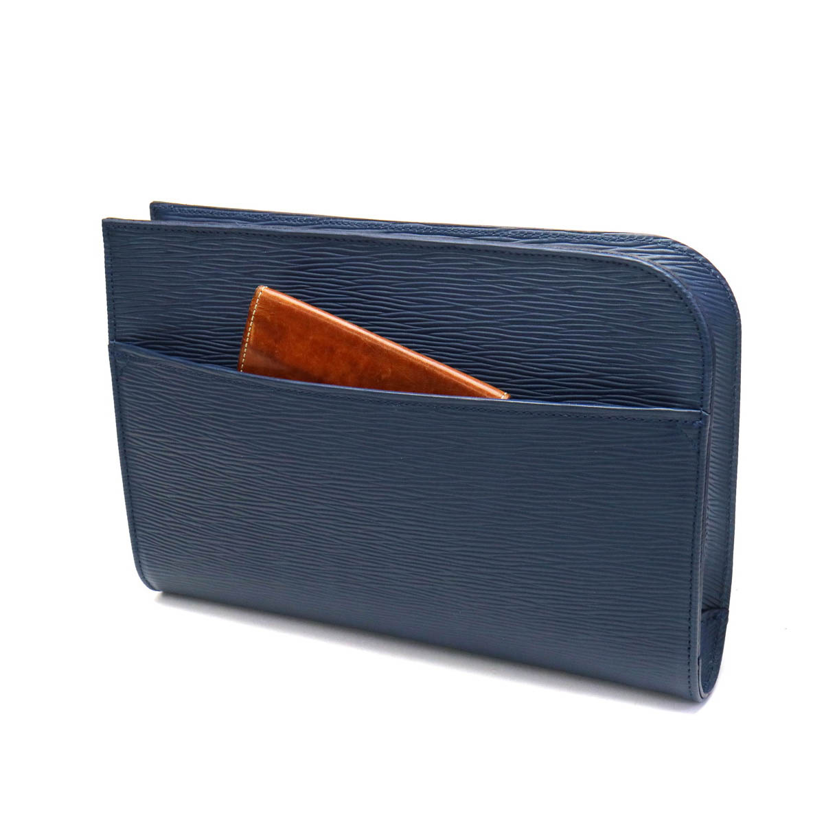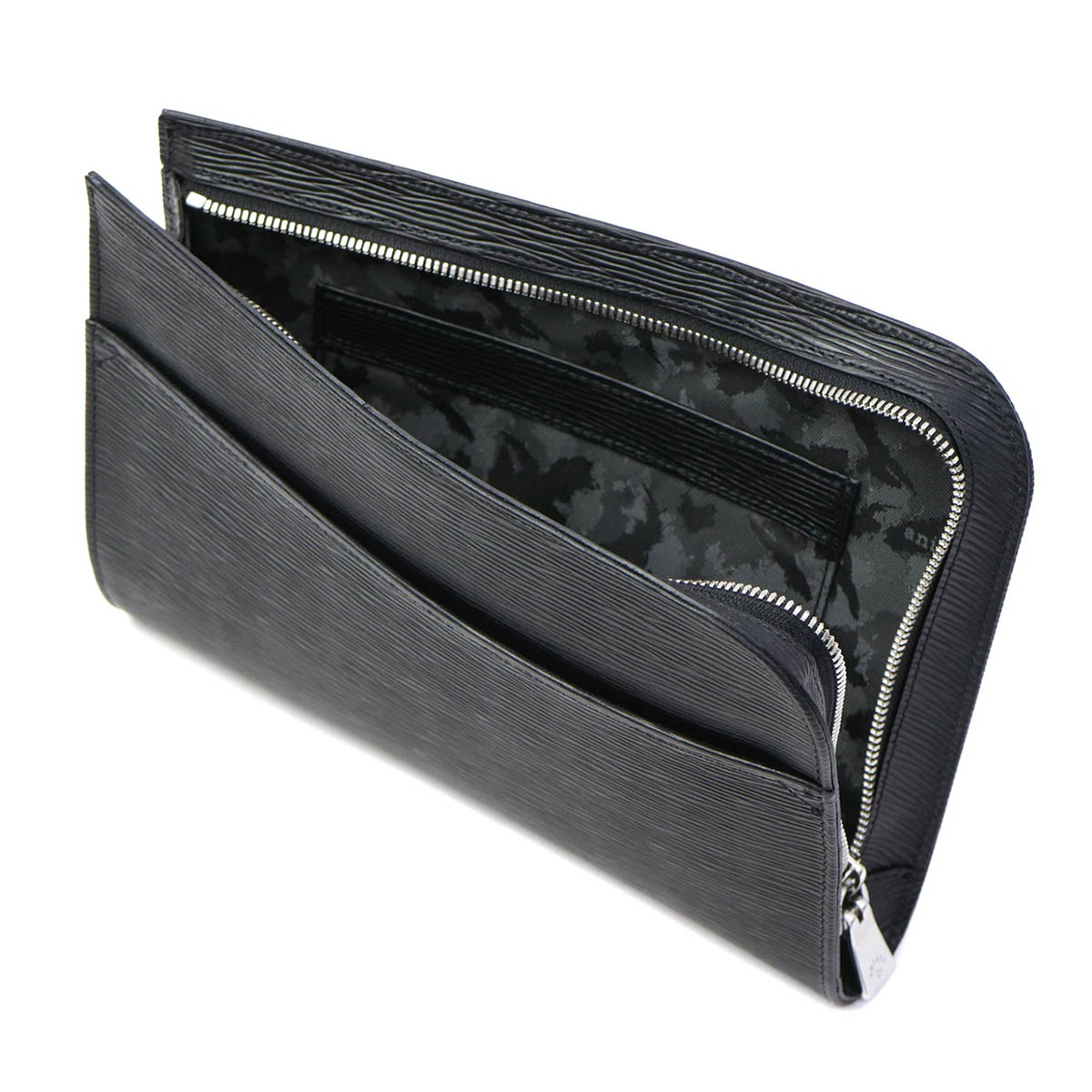 光のあたる海面を感じさせる「ウェーブレザー」を使用した、コンパクトなクラッチバッグ。少し小さめなサイズ感が、より良い持ち歩きやすさを実現しています。