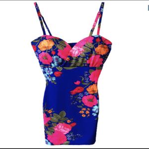 New Arrival!トロピカルキャミワンピ ミニ丈 総柄 タイト