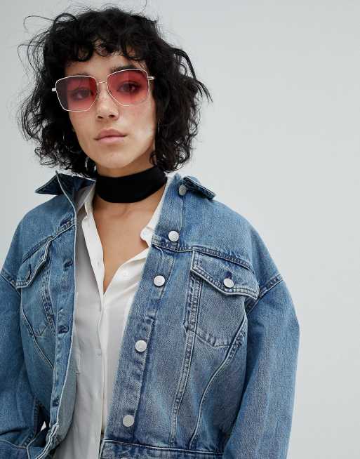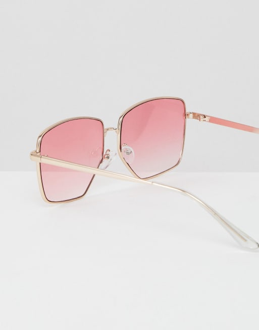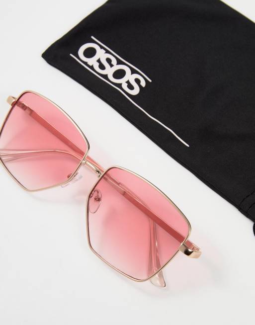 ASOS Metal Cut Away Detail Square Fashion Sunglasses In Pink Fade Lens