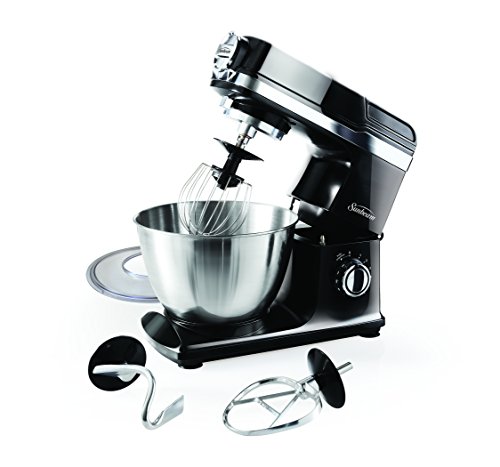 The powerful Planetary Mixer is built with your convenience in mind. With planetary mixing action the beater rotates in an orbital motion around the stationary bowl. This multi-purpose unit allows you add attachments to accommodate all of your cooking needs. Its durable Die-Cast metal housing and chrome accents gives it a classic look, perfect for any style of kitchen. Optional Accessories - Pasta Maker, Meat Grinder, Slicer/Shredder. Glass Blender Jar, Ice Cream Maker & Slow Juicer on-line only.Feature