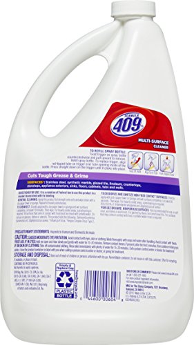 -. Binding : Grocery -. Brand : Formula 409 -. EAN : 0044600006048 -. Feature : One 64 ounce refill bottle of Formula 409 Multi-Surface Cleaner (Packaging May Vary) / Cleans and cuts through grease and grime, and deodorizes / Kills over 99% of germs and prevents mold and mildew growth / Use on a variety of hard nonporous surfaces throughout your home / Refills two 32 ounce spray bottles -. Label : Formula 409 -. Manufacturer : Formula 409 -. Model : thomaswi -. MPN : 10044600006366 -. NumberOfItems : 1 -. PackageQuantity : 1 -. PartNumber : 10044600006366 -. ProductGroup : Grocery -. ProductTypeName : GROCERY -. Publisher : Formula 409 -. Size : 64 oz -. Studio : Formula 409 -. Title : Formula 409 Multi-Surface Cleaner, Refill Bottle, 64 Ounces (Packaging May Vary) -. UPC : 044600006048 -. Warranty : Manufacturers warranty