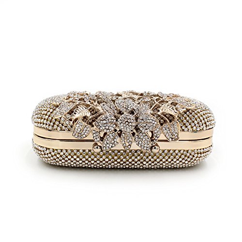 Gold Clutch Purses Classy Flower for Women Luxury Rhinestone Crystal Evening Clutch Bags Vintag...