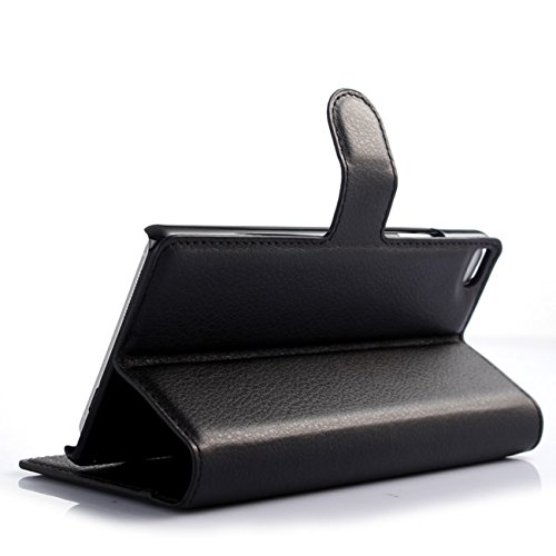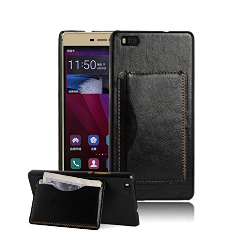 Huawei P8 Lite Case, Fettion Premium PU Leather Wallet Phone Cases Flip Cover with Stand Card Holder for Huawei P8 Lite Smartphone (Wallet - Black)