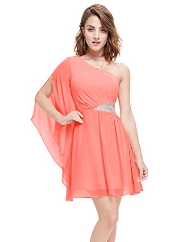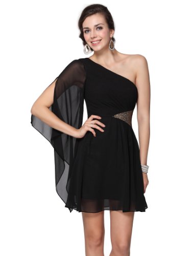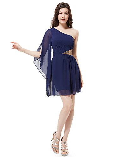 One shoulder short cocktail dress Padded enough for "no bra" option Unique sleeve style Non-removable sequins decorate the waist The sleeve length of size 8-18 are 32"-33",33"-34",33"-34",34",34"-35",34"-35"Feature