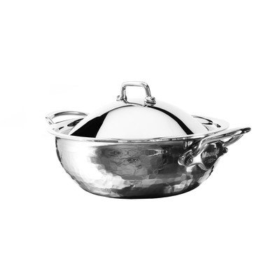Studio : Mauviel Publisher : Mauviel Binding : Kitchen Product Description The ideal balance between tradition and innovation. The perfect pan for cooking and serving. Multi-ply 18/10 Stainless steel with non-drip edge. Polished and hammered exterior. Stainless steel handles are 'stay cool' and fixed with Stainless steel rivets. 0