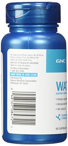 -. Binding : Health and Beauty -. Brand : GNC -. Feature : All-natural blend is enhanced with potassium and magnesium / Regulates fluid and water retention levels / It also combines vitamin B-6 with a proprietary blend of herbs and antioxidant-rich-fruit -. Label : GNC -. Manufacturer : GNC -. PackageQuantity : 1 -. ProductGroup : Health and Beauty -. ProductTypeName : HEALTH_PERSONAL_CARE -. Publisher : GNC -. Studio : GNC -. Title : GNC Total Waterex Diet Supplement 60 Capsules