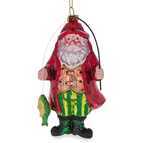 5.5" Santa Claus Fishing Blown Glass Christmas Ornament