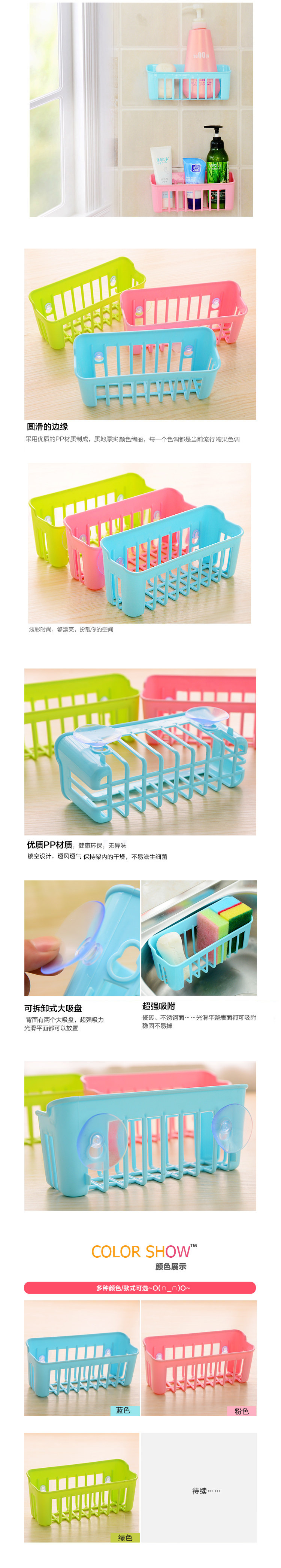 (买1送1)厨房餐饮用具 炫彩水槽沥水架置物架带吸盘收纳篮 洗碗海绵沥水架